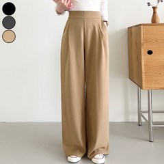 가비진 여성용 스판 좋은 핀턱 밴딩 일자 와이드 팬츠 키작녀 바지 빅사이즈까지