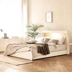 동서가구 이즈 카이 LED 1단 3서랍 수납침대 프레임 + 본넬 양면 매트리스 세트 방문설치