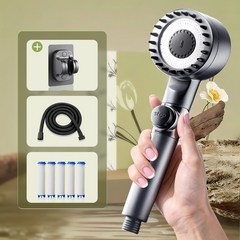 홈럭스 파워수압 필터 샤워기 + 필터 5개 + 샤워호스 1.5M + 거치데 안마 샤워기세트 8pcs