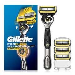 질레트 프로쉴드 옐로우 파워 면도기 핸들 + 면도날 4입