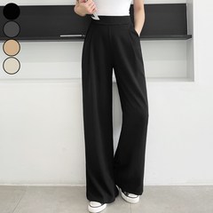 가비진 여성용 스판 좋은 핀턱 밴딩 일자 와이드 팬츠 키작녀 바지 빅사이즈까지